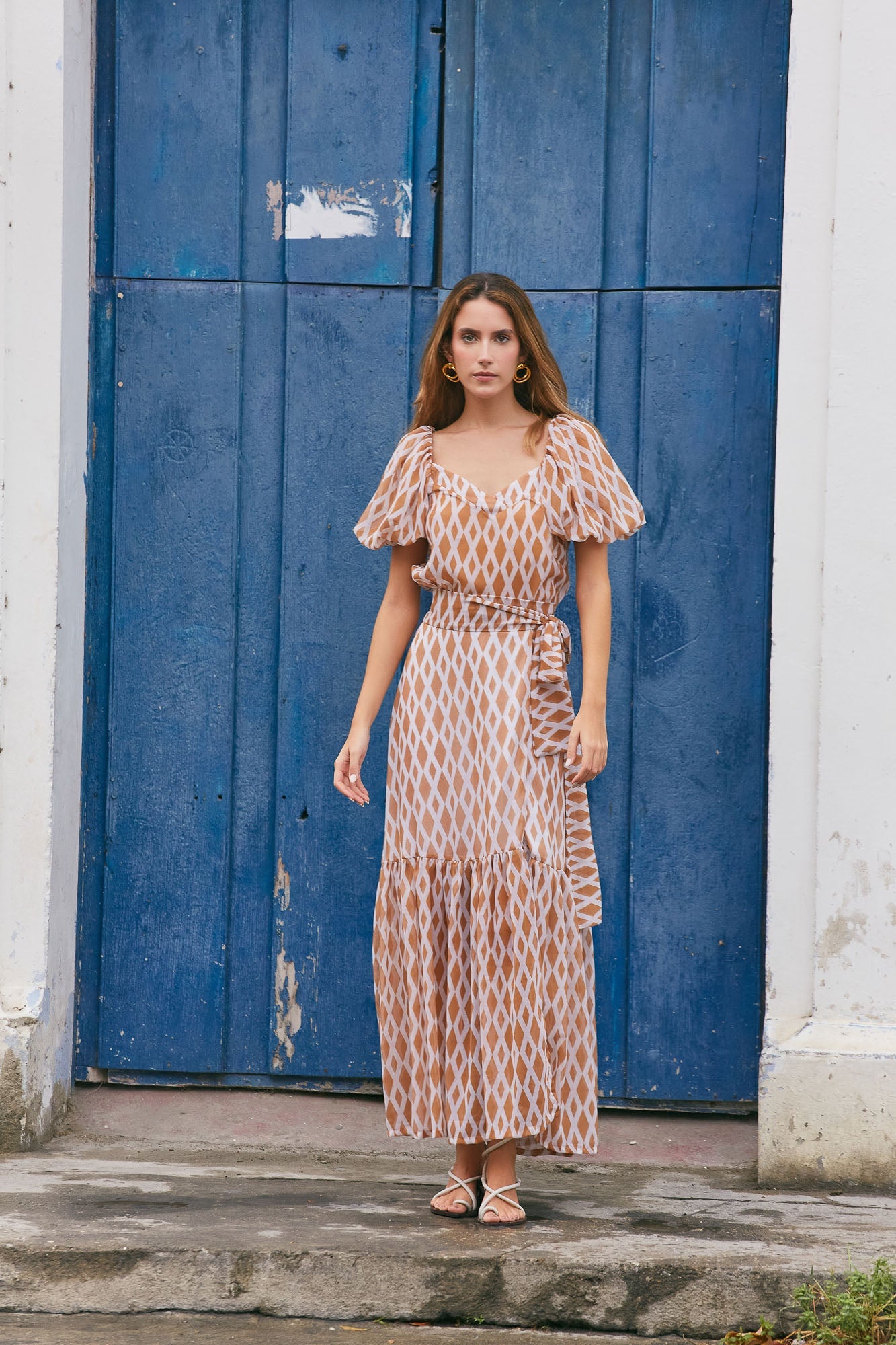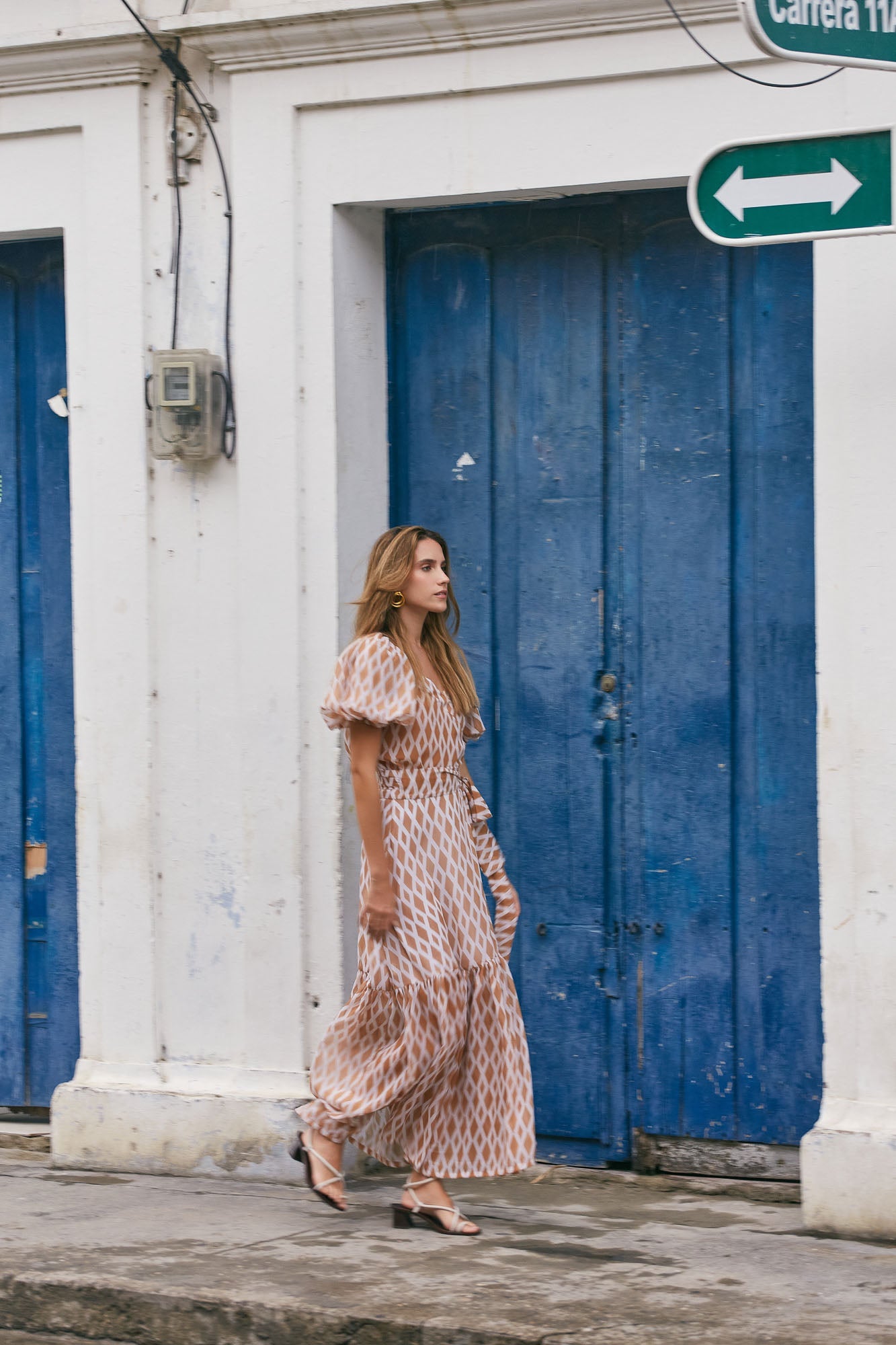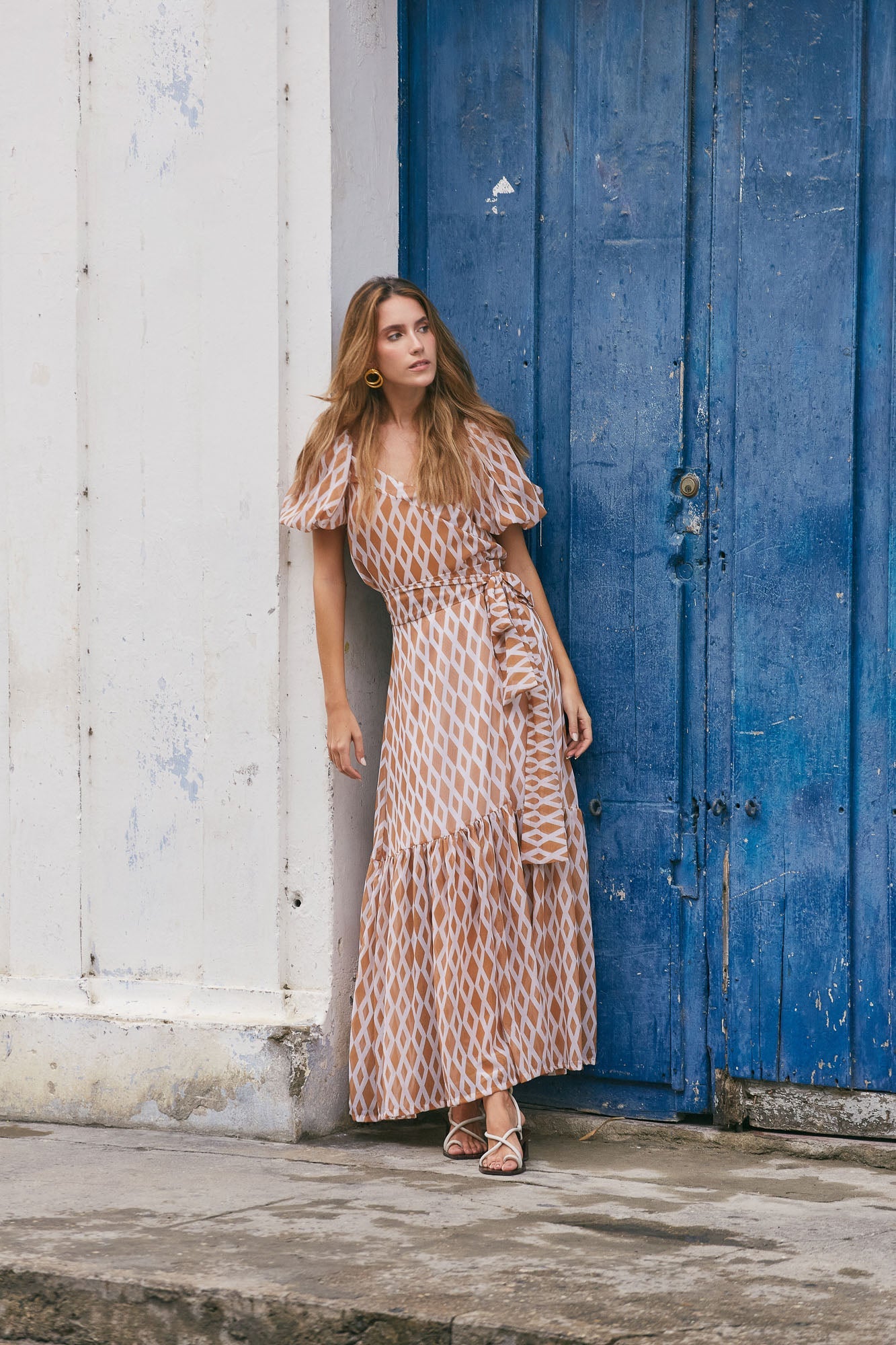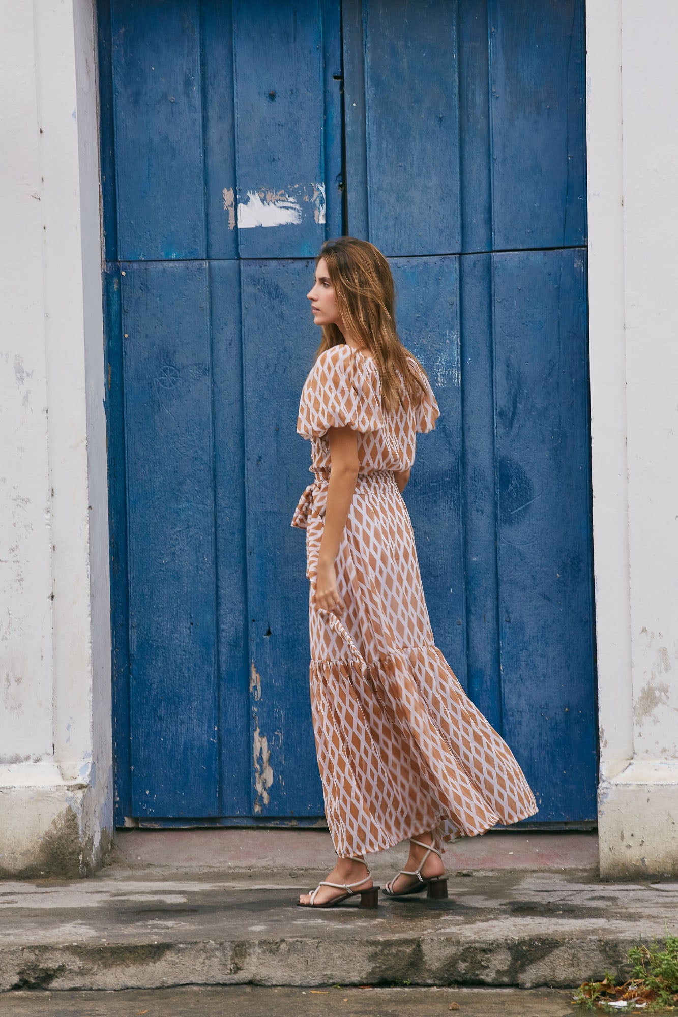 This sarong skirt and sleeveless blouse set features a subtle, understated print that lets you wear both pieces separately, pairing them with a basic white skirt or a pair of jeans for the blouse. Ideal for a night out with friends, a birthday, or any other occasion where you want to make a statement.