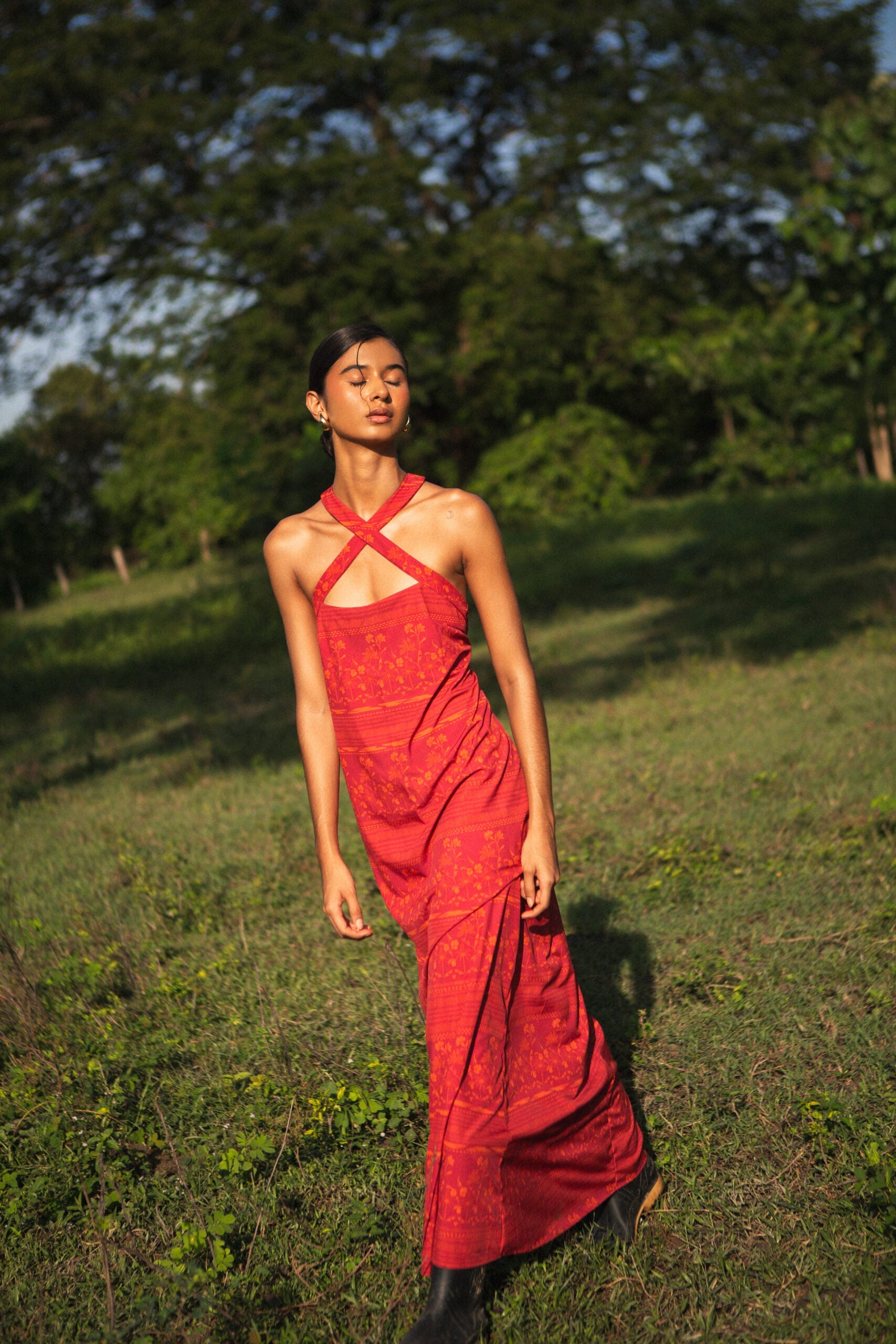 Long straight dress. It has a low back that makes it look very flirty. Wear it with flats for something more relaxed or with high sandals for something more formal.